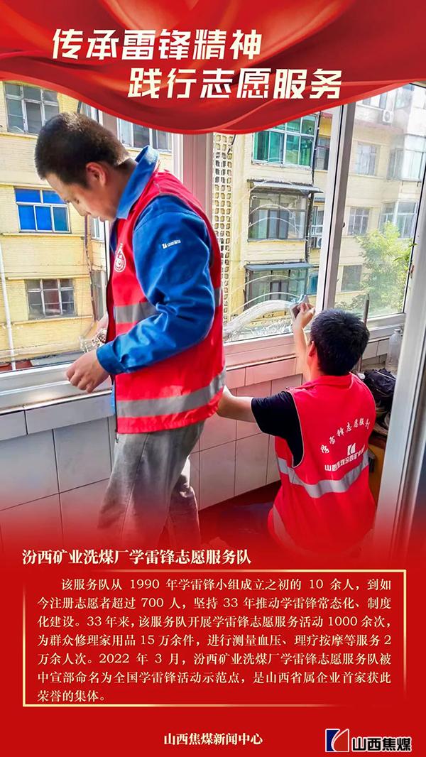 長期以來,山西焦煤廣大志愿者走進社區、深入群眾,用心用情為員工群眾辦實事、做好事、解難事,以實際行動詮釋雷鋒精神。學雷鋒志愿服務在山西焦煤礦(廠)區早已蔚然成風。今天,特推出一組“傳承雷鋒精神 踐行志愿服務”海報,展現新焦煤志愿者踐行雷鋒精神的時代風采。