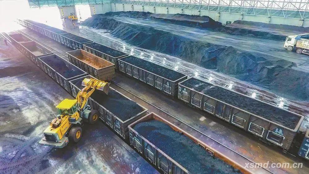 山西焦煤堅定扛起能源保供的政治責任,為國家能源安全貢獻“焦煤力量”。圖為山西焦煤臨汾銷售區趙城站煤場內加緊鐵路外運裝車。