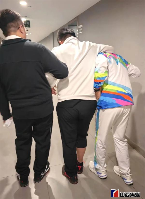 快速運球、傳球,起跳投籃……下午3點,A館籃球賽正緊張上演。突然“啊”的一聲,焦煤股份隊的一名運動員在激烈對抗中不慎崴了腳。