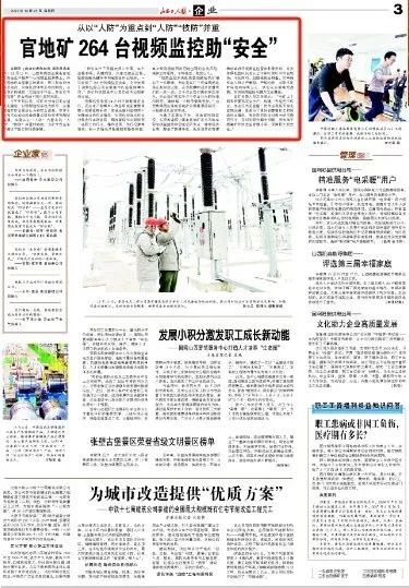 今年年初以來,該礦大力推進安全信息化建設,以視頻監控系統為抓手,全面加強對作業現場行為的安全監管,在井下所有作業地點和地面重點崗位安裝視頻監控器,實現從以 “人防”為重點到 “人防”“技防”并重的轉變,為礦井安全生產提供了堅實的科技保障。