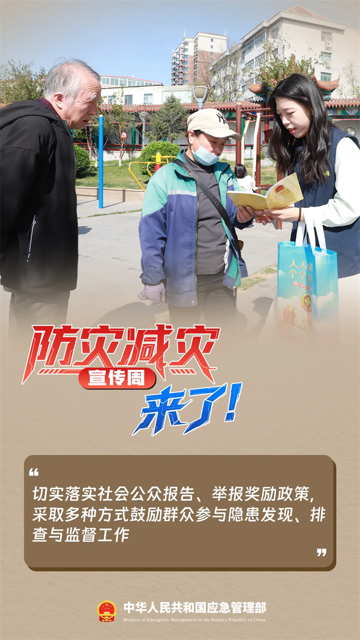災害始于視而不見的疏忽,平安需要眾志成城的守護。無論身居何地,不論家在何方,每個你、我、他,都是不可或缺的力量。為生命多一份警醒,讓你我少一次僥幸,行動起來,排查身邊災害隱患。